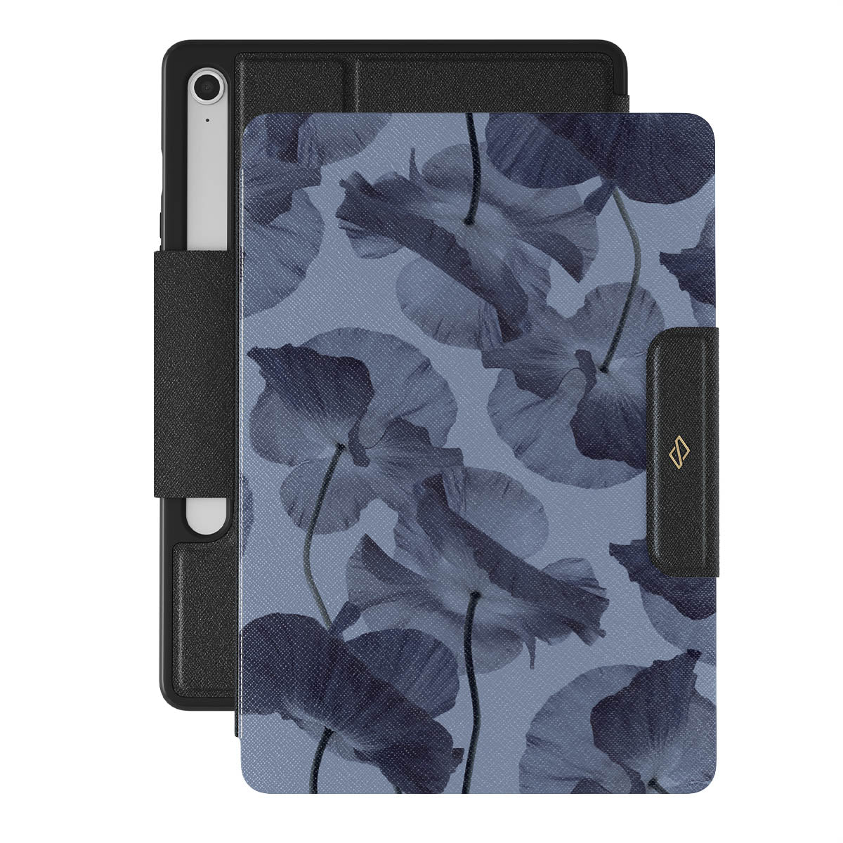 This Samsung Galaxy Tab S10 FE folio case design blends seamlessly into any workspace, offering a polished yet mysterious touch. Mixing deep blue flowers and a bright blue background, our Archives pattern is perfect for those who like their style to whisper, not shout.