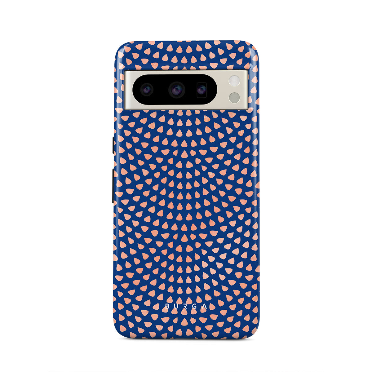 Rose gold teardrops meet a deep shade of blue in our Azure Waters Google Pixel 8 Pro phone case and create the duo worth taking with you every evening out. Add a touch of strictness with the symmetrical teardrops pattern paving the way and keeping your phone out of harm's way with the case that is as protective as it is beautiful.