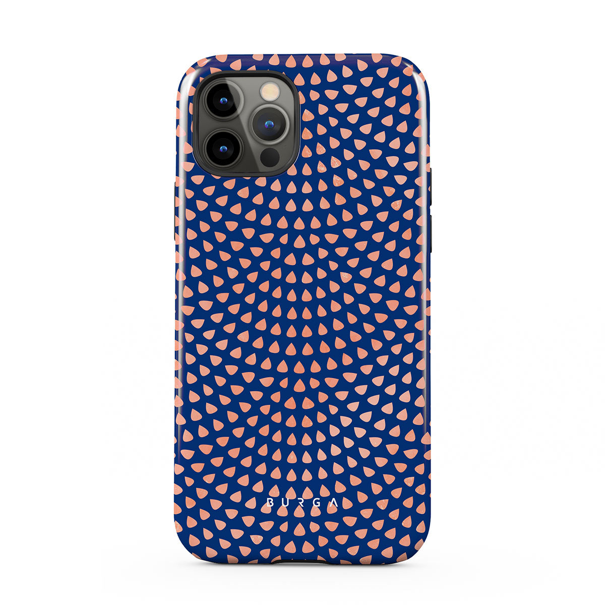 Rose gold teardrops meet a deep shade of blue in our Azure Waters iPhone 12 Pro phone case and create the duo worth taking with you every evening out. Add a touch of strictness with the symmetrical teardrops pattern paving the way and keeping your phone out of harm's way with the case that is as protective as it is beautiful.