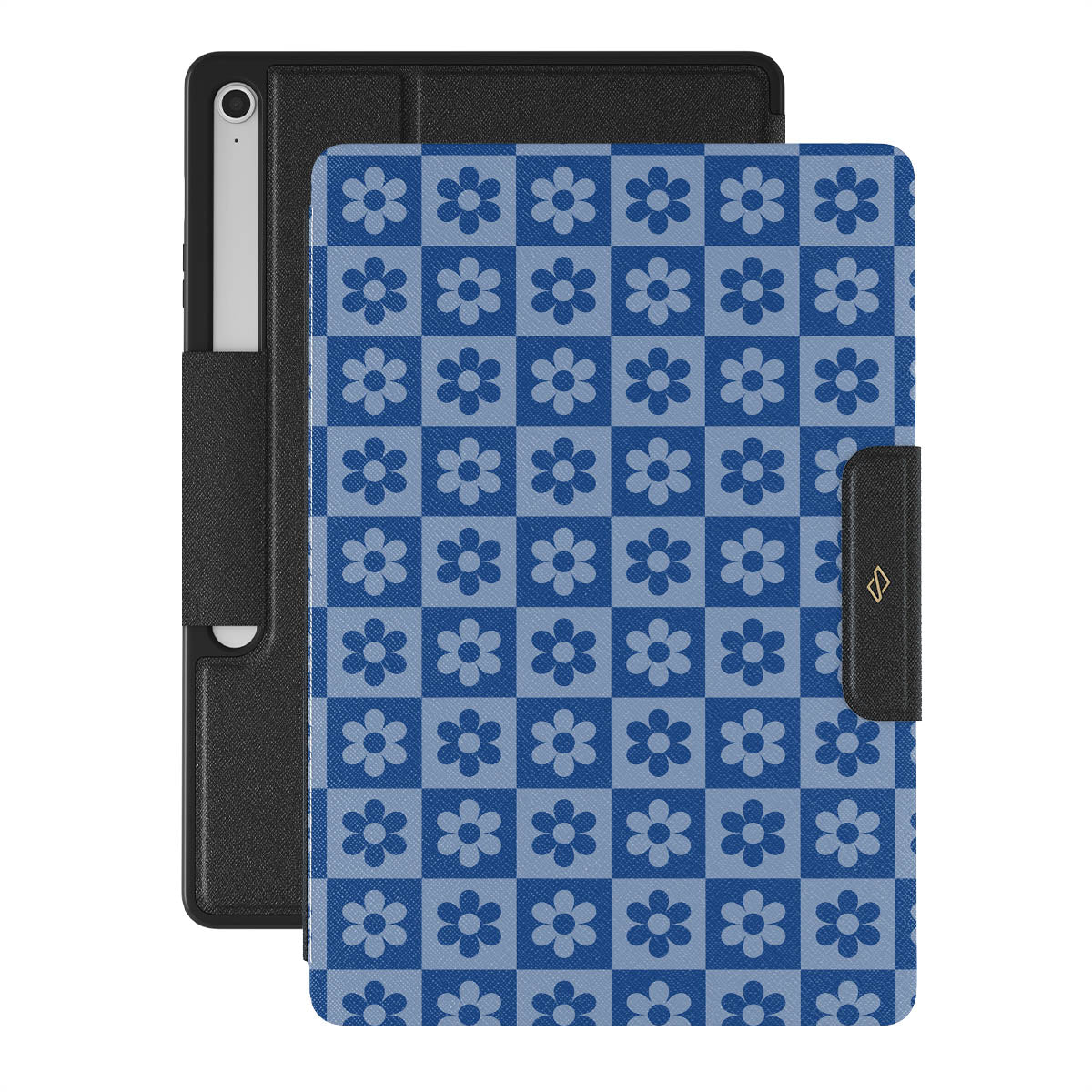 A true statement design, featuring a captivating checkered pattern with icy blue tones and a beautiful flower adorning each square. Our folio case not only offers reliable protection for your device but also captures the essence of the fun and carefree Y2K era. Embrace your inner flower child with the Bloom Boom folio case and let your tech bloom with style.