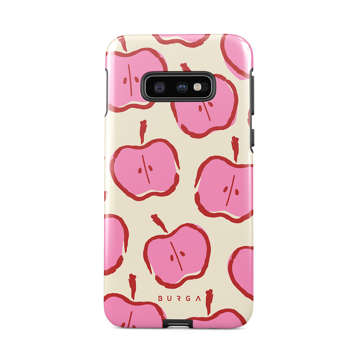 Our Bon Appétit Samsung Galaxy S10E phone case design makes every day feel like a magical adventure filled with sweet surprises. The playful pink hues of the apples stand out brilliantly against the serene cream background, creating a captivating and enchanting visual.