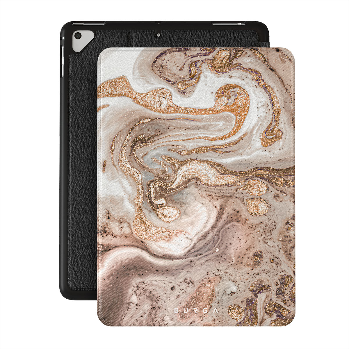 Our enchanting Cappuccino iPad 9.7 (6th/5th Gen) folio case showcases a sophisticated and creamy marble pattern with golden swirls in it. The marble dream radiates elegance and luxury and is guaranteed to add some to your style.