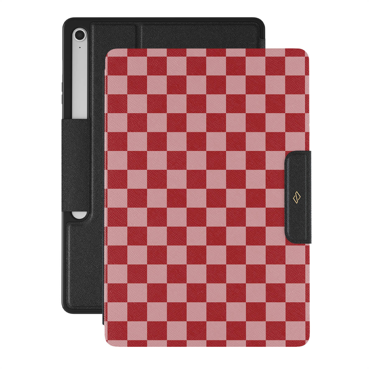 Bold, strong, and never on hold! Our Cheerleader - {Galaxy Tab model Samsung Galaxy Tab S10+ FE folio case design will turn your Galaxy Tab into the perfect accessory! The red checkered pattern adds that additional spark to your style while keeping your Galaxy Tab safe.