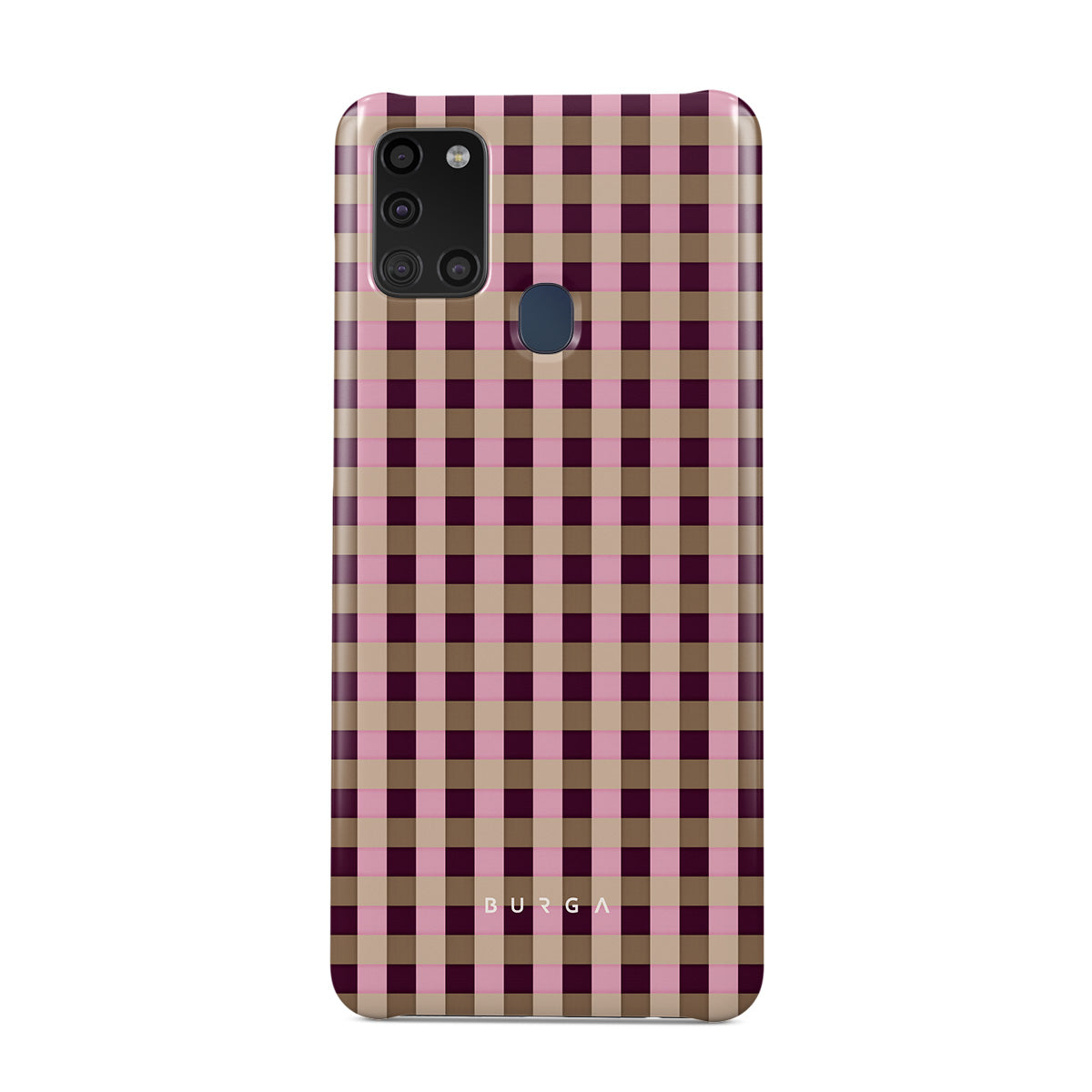 This design features: pink and burgundy plaid pattern, modern checkered style.