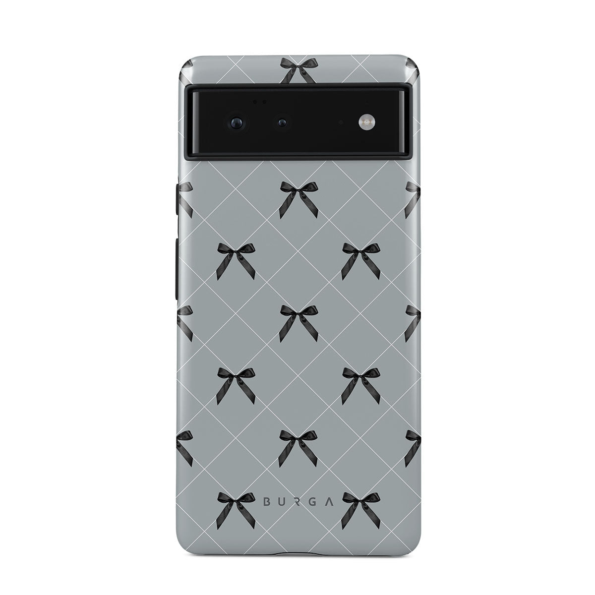 A subtle hint to a world of dance and soft melodies. Crisscrossing bows over a muted gray tone capture the flirtatious essence of the coquette-core aesthetic. Playful and sweet, our Coquette Google Pixel 6 phone case design is perfect for those who find beauty in the details.