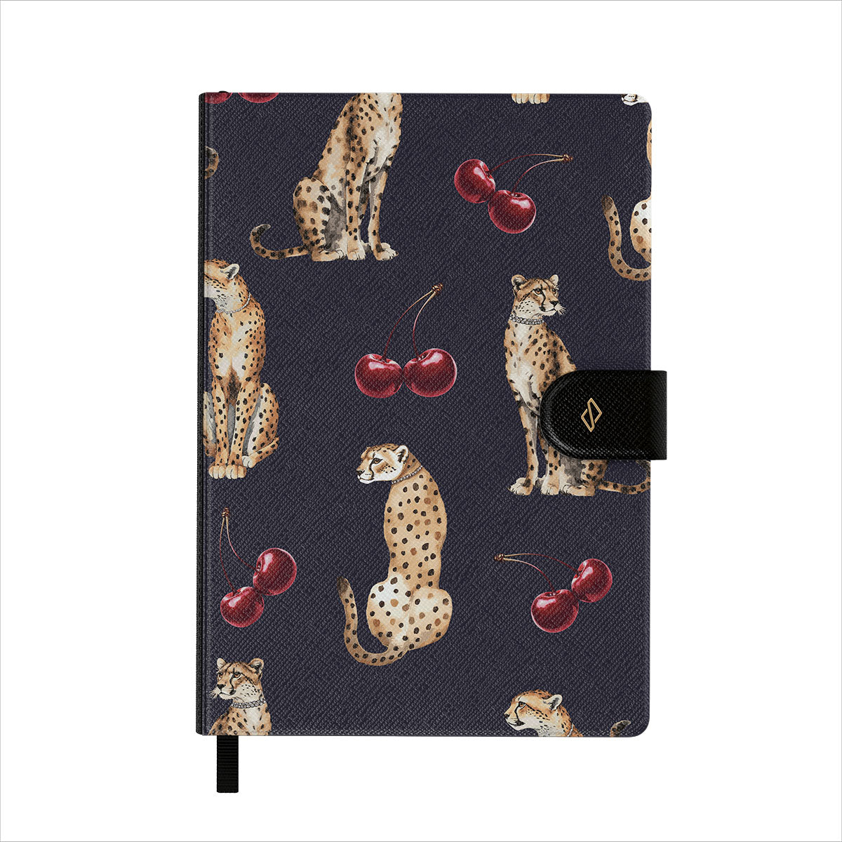This design features: cheetah patterns, cheetahs, cherries