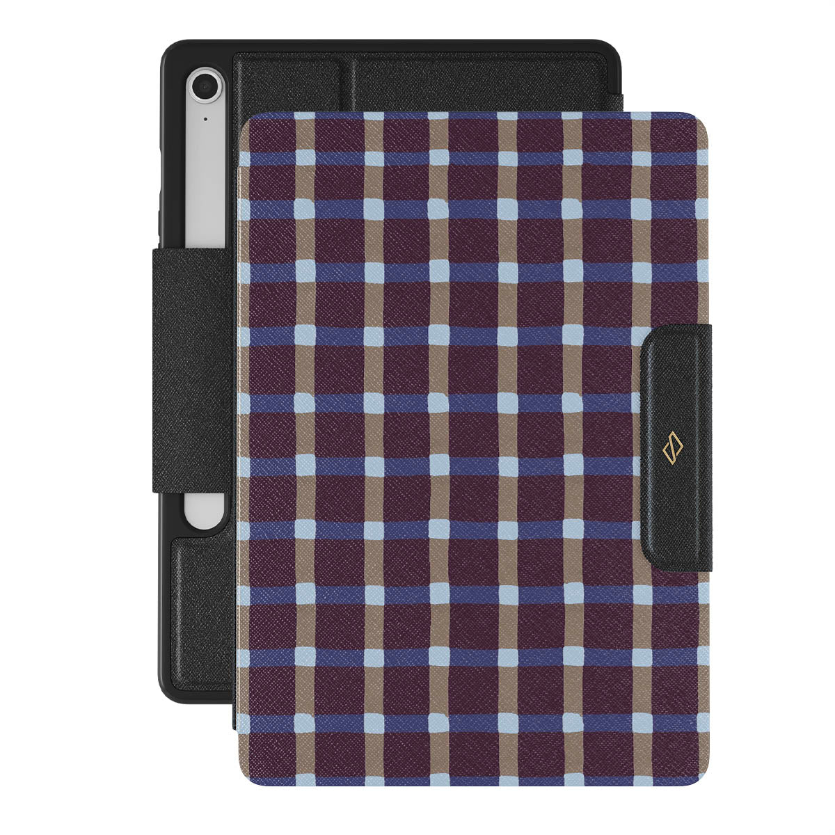 This design features: plaid check pattern .