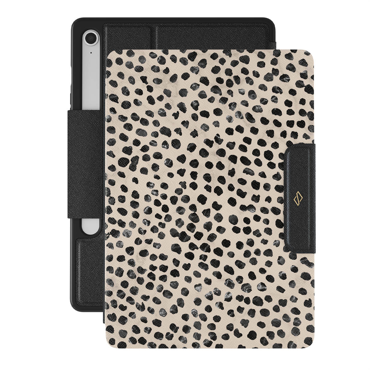 Cute cream color as a background for the unique pattern of asymmetrical black spots creates a real eye-catcher in our Almond Latte Samsung Galaxy Tab S10 FE folio case. The spotted pattern adds a touch of luxury to your Galaxy Tab, while the case's hard-shell nature offers much-needed protection making it a popular choice between fashion lovers.