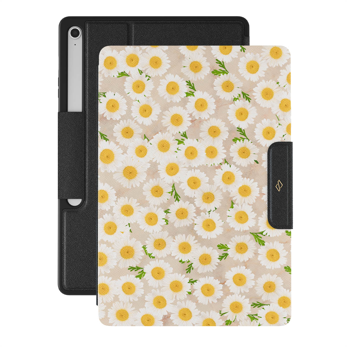 The smell of the Daisies surrounding you, memories of "Loves me, loves me not," and the smile it gives you. Feel free to look, to smell. Take this blissful moment with your daisy inspired Samsung Galaxy Tab S10+ FE folio case whenever you need a little relaxation or when you want to simply enjoy the moment while protecting your Galaxy Tab.