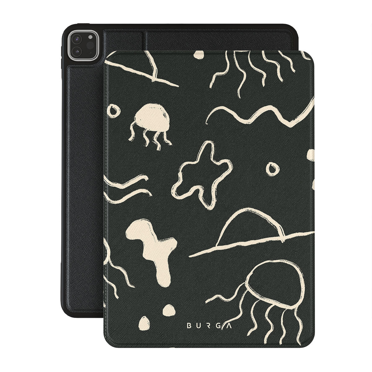Our Eclipse iPad Pro 11 (4th/3rd Gen) folio case reflects the enigmatic beauty of the ocean during a solar eclipse. The dark hues and bright accents represent how the light dances on the water, while the waves and jellyfish capture the serene yet dynamic nature of the ocean.