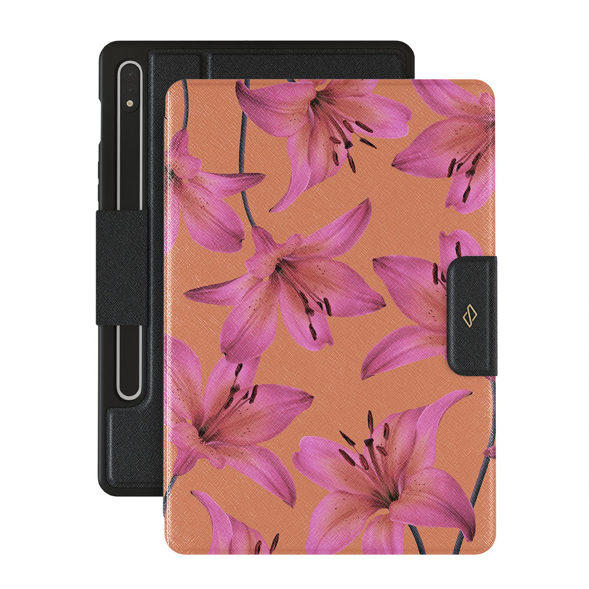 A design inspired by the effortless bloom of lilies, reflecting the beauty of embracing life's spontaneous moments. Like lilies that thrive untamed, this case reminds us to flourish in the face of change. Embodying the magic of life's unpredictable tapestry with our Eden Samsung Galaxy Tab S9 FE folio case.