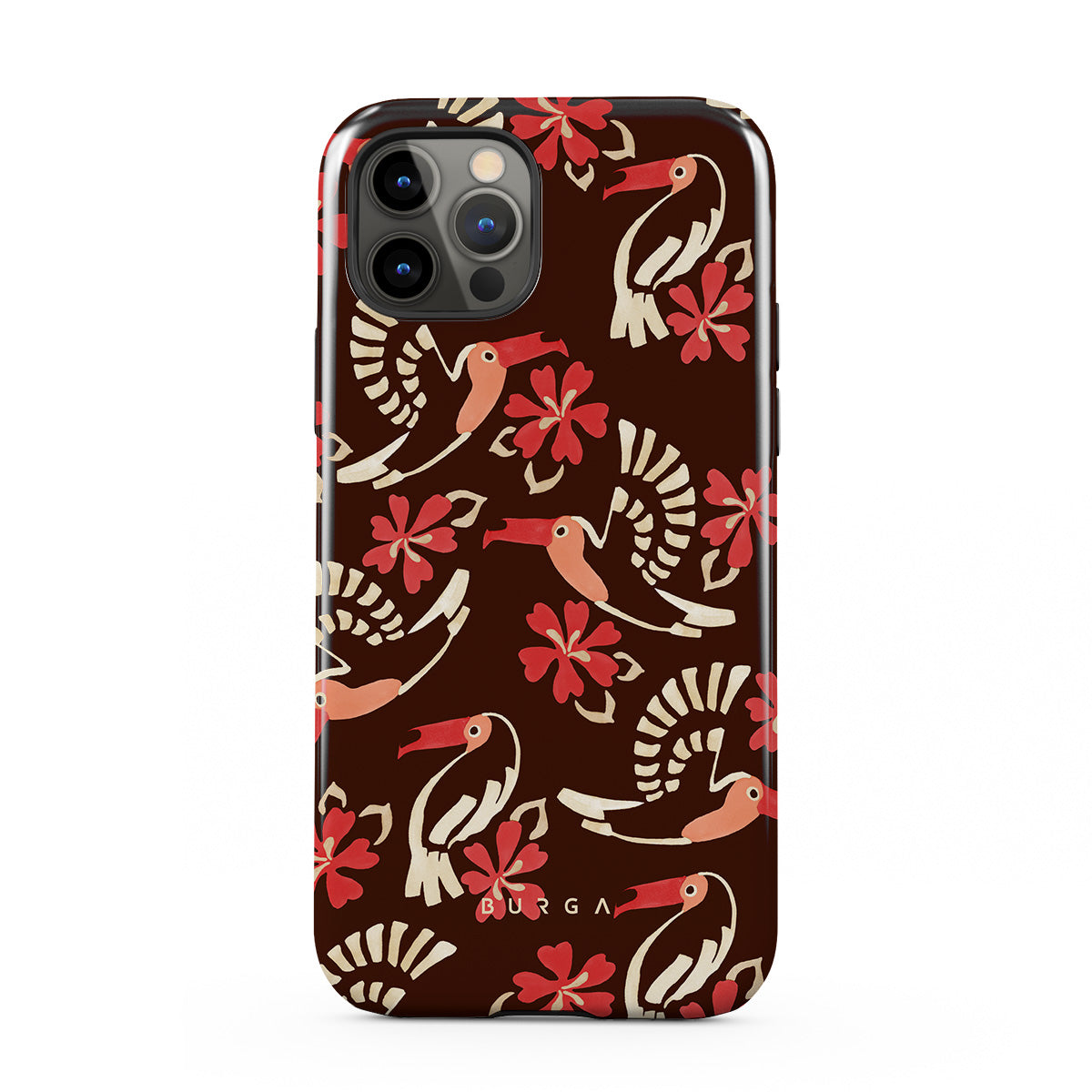 A jungle rave. Parrots, florals, bursts of red and cream—like someone threw a party in the rainforest and forgot to send you the invite. This iPhone 12 Pro phone case design is your RSVP.