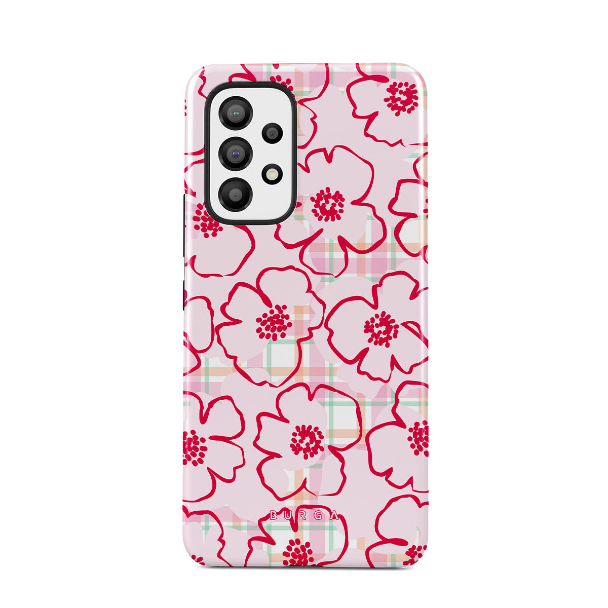 Pink flowers bloom from this Samsung Galaxy A33 phone case design—just like the ones you’d pick and put in your hair, simple and pretty, turning every walk through the garden into a fairy tale.