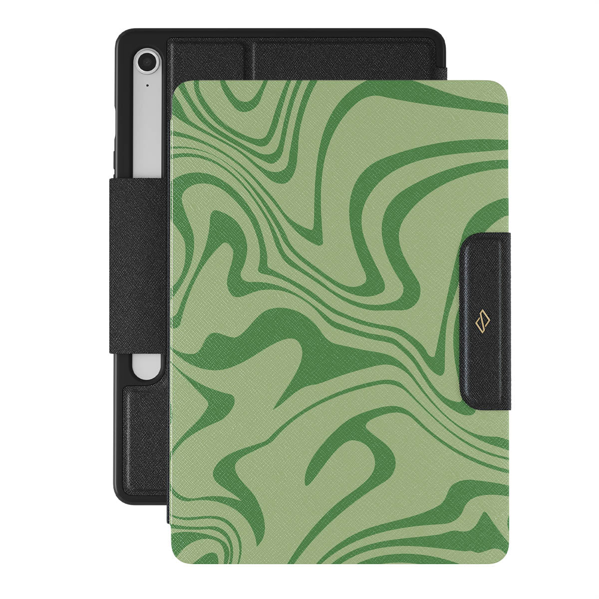 Our Funky Sensation Samsung Galaxy Tab S10 FE folio case design is a perfect abstract piece for those who love soft pastel colors but still want to stand out. A sharper take on the liquid swirl design in green shades will accompany your device perfectly.