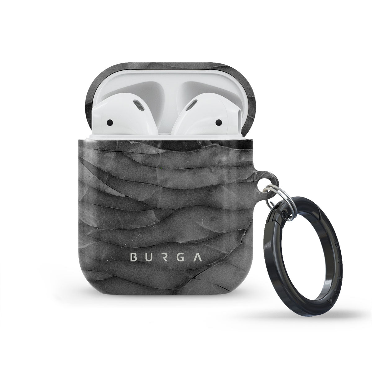 The gray and minimalistic pattern of our First Expedition Apple Airpod Generation 1 & 2 case cover combines trendy marbling with a cool-toned color scheme. The gray design will add a touch of sophistication to your style while also protecting the case from scratches and dents. Our case fits perfectly snug around Apple Airpod Generation 1 & 2 . “Like a glove!” one might say. And it won’t disrupt the wireless charging capabilities of the newer model. There’s even an LED light indicator to prove it (don’t worry, wired charging still works, too). When fitted, the BURGA case will protect the delicate Apple Airpod Generation 1 & 2 case beneath it from scratches, bumps, and drops while remaining scratch-free itself. Our signature design pattern prints are High Quality, and will never peel or fade away- thanks to our unique printing technology. And finally, a handy carabiner is there to make your life easier and more convenient: just snap it around your keys or belt loop and tackle the day head-on. Your music is right there by your side when you need it.