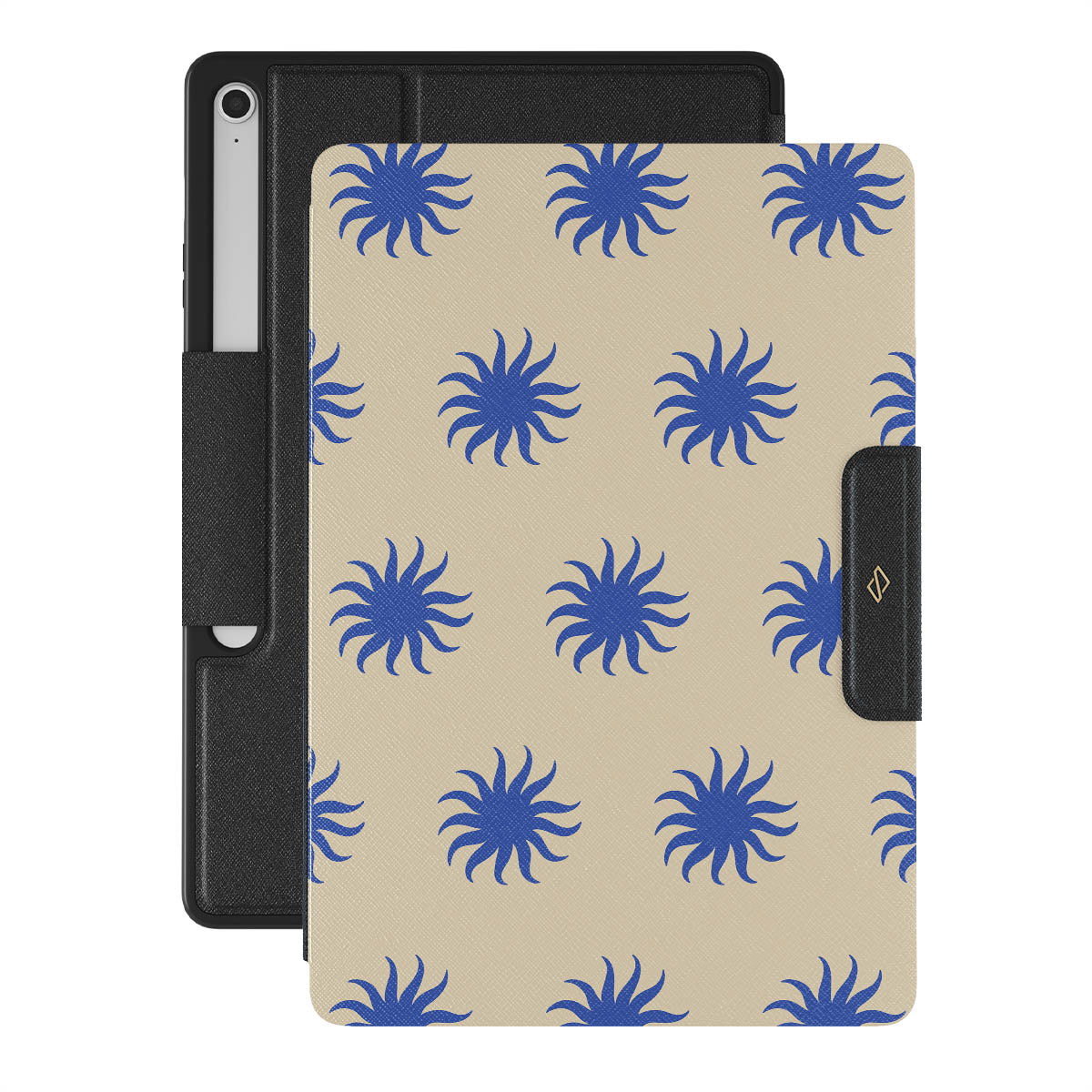 Immerse yourself in the vibrant spirit of the tropics with our La Playa Samsung Galaxy Tab S10+ FE folio case. This design boasts a warm, sandy beige base highlighted by striking blue motifs, reminiscent of the breezy Caribbean islands. It’s a stylish celebration of coastal beauty.