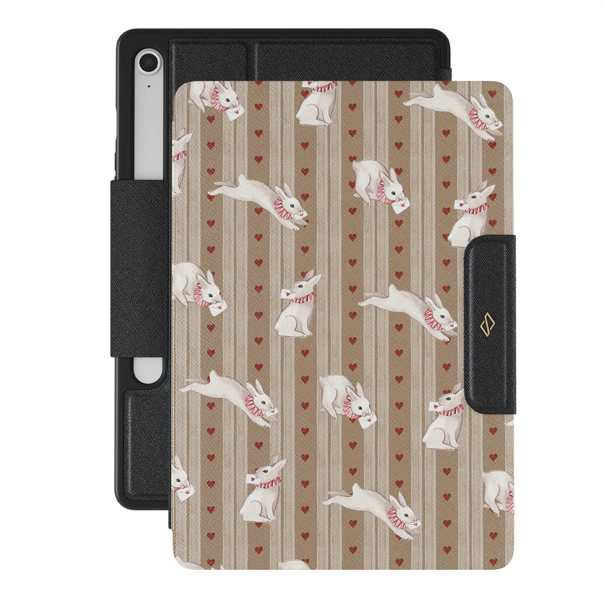 The Late Again Samsung Galaxy Tab S10 FE folio case design is a love letter lost in time—scattered hearts, hurried notes, and white rabbits racing against a clock that refuses to be tamed. Sent, but never received. Read, but never answered. Always running, always chasing, always just a moment too late.