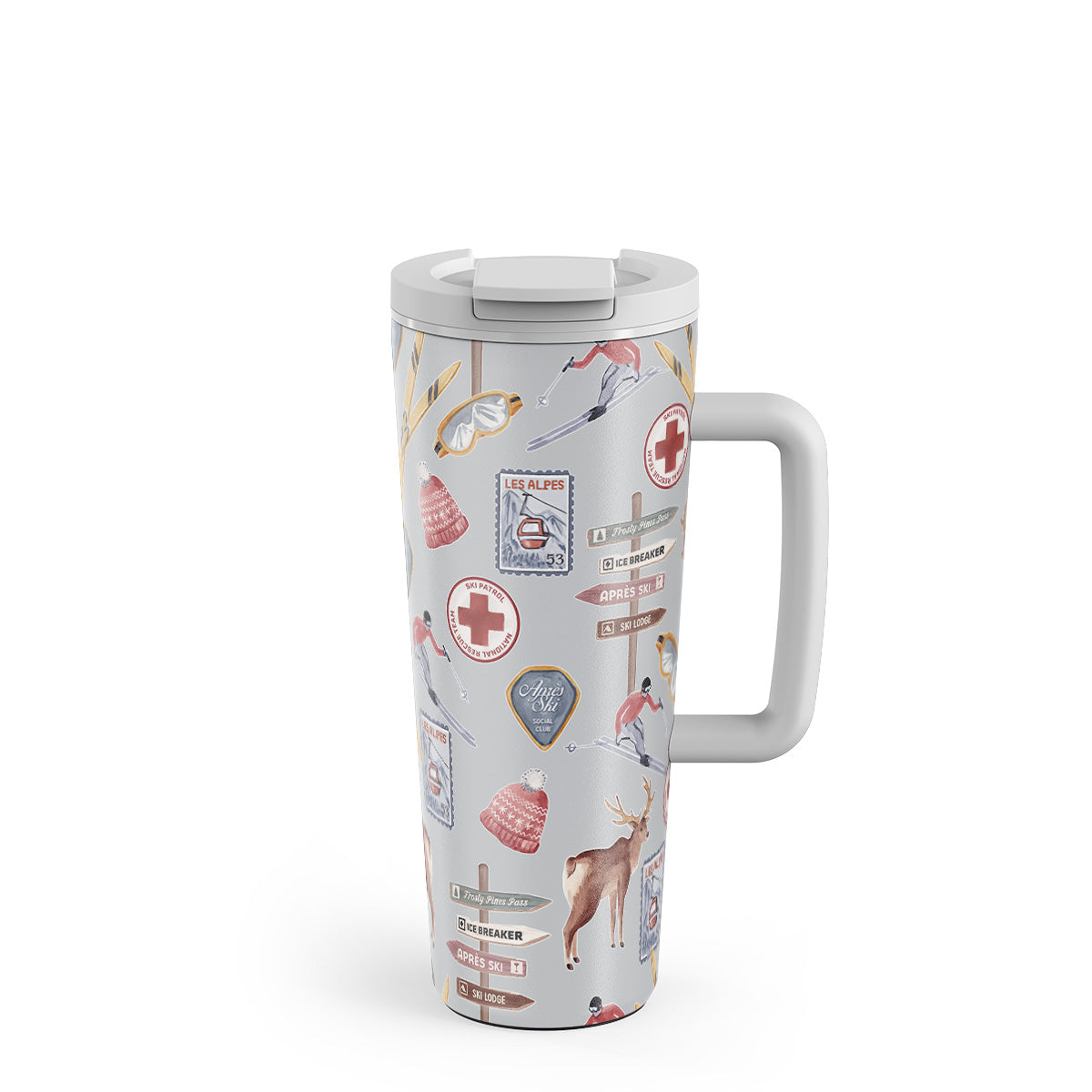 This design features: vintage ski poster, retro ski resort, reindeer illustration, ski lift design, alpine pattern, winter sports, classic ski lodge style, mountain resort graphics