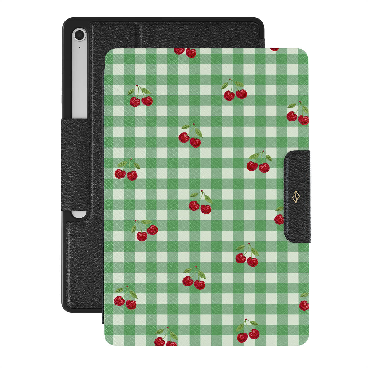 The Little Life Samsung Galaxy Tab S10+ FE folio case design: green checks, simple and true, like a patch of grass under a tree, where you can sit and watch the small world go by, every leaf a chapter in nature’s story.