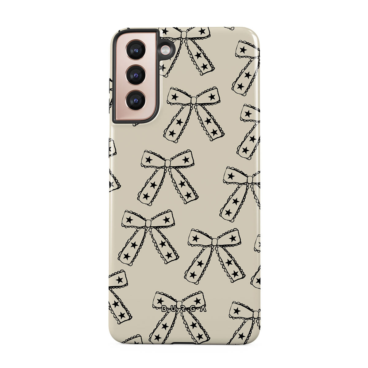 Shine on, Lone Star. Starry bows on a beige background bring a fun twist to your look. This Samsung Galaxy S21 Plus phone case design is ideal for those who march to the beat of their own drum and make their own fashion rules.