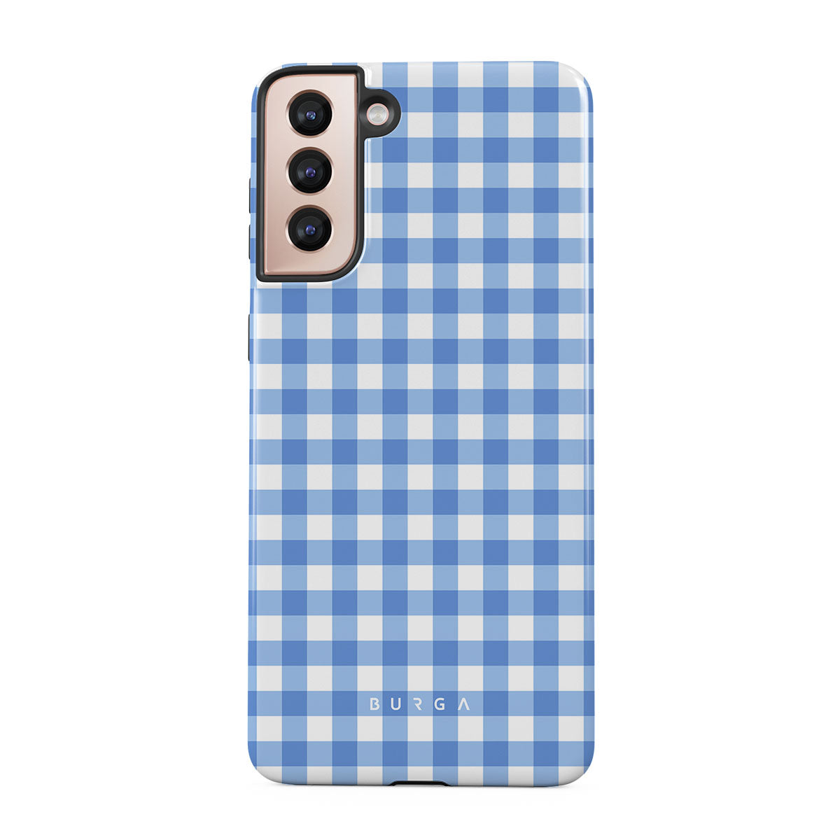 Crisp blue checks are your invitation to lay on the grass, look up at the sky, and find shapes in the clouds—simple joys that make any day lovely. That’s our Lovely Day Samsung Galaxy S21 Plus phone case design.