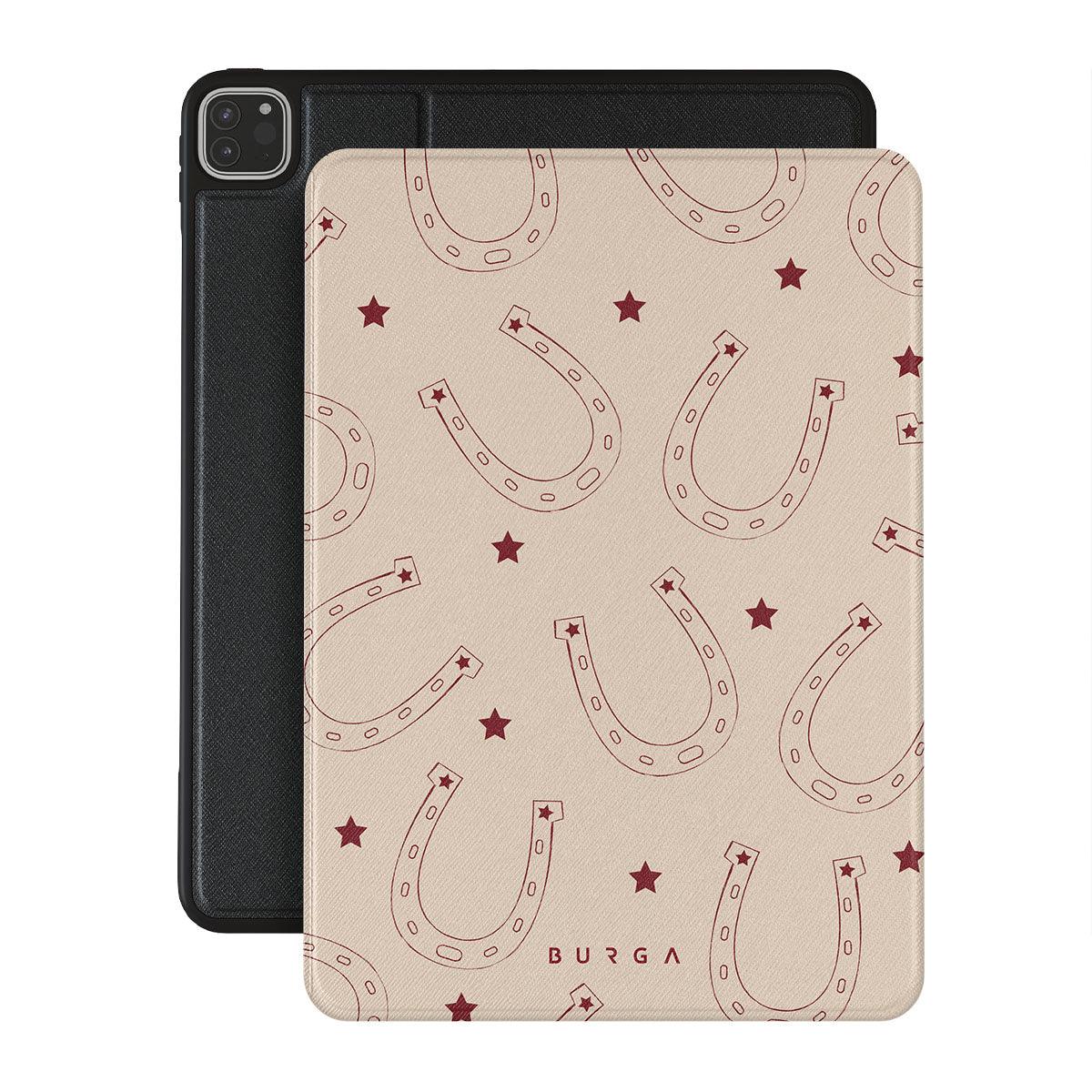 Horseshoes for luck, stars for style. Keep fortune on your side with our Lucky Charm iPad Pro 12.9 (6th/5th Gen) folio case . This design is a playful take on traditional symbols of luck. The earthy tones make it a versatile accessory for any western-inspired outfit—and not only.