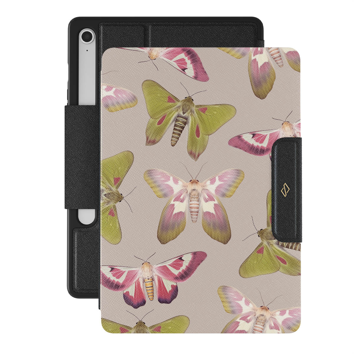 A tapestry of muted-toned moths — their wing patterns echoing tales of transformation and resilience found in nature's delicate beings. These moths, wings wide, serve as silent mentors, teaching us that every phase of life and change holds its own magic and mystery. Discover our Metamorphosis Samsung Galaxy Tab S10 FE folio casedesign.