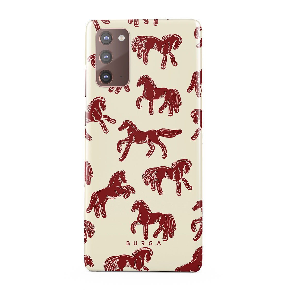 It's time to unleash your wild side with the Mustang design. Bold red horses gallop across a nude background, capturing the spirit of untamed adventure. This Samsung Galaxy Note 20 4G / 5G phone case is perfect for the free-spirited souls ready to ride into the unknown.