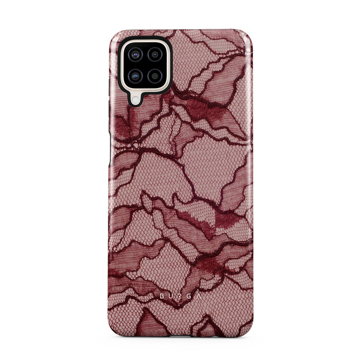 Channel your inner power with our Office Siren Samsung Galaxy A12 4G phone case design. A soft rosé backdrop and dark pink lace blend elegance and boldness, perfect for those who make quiet yet undeniable statements with confidence.