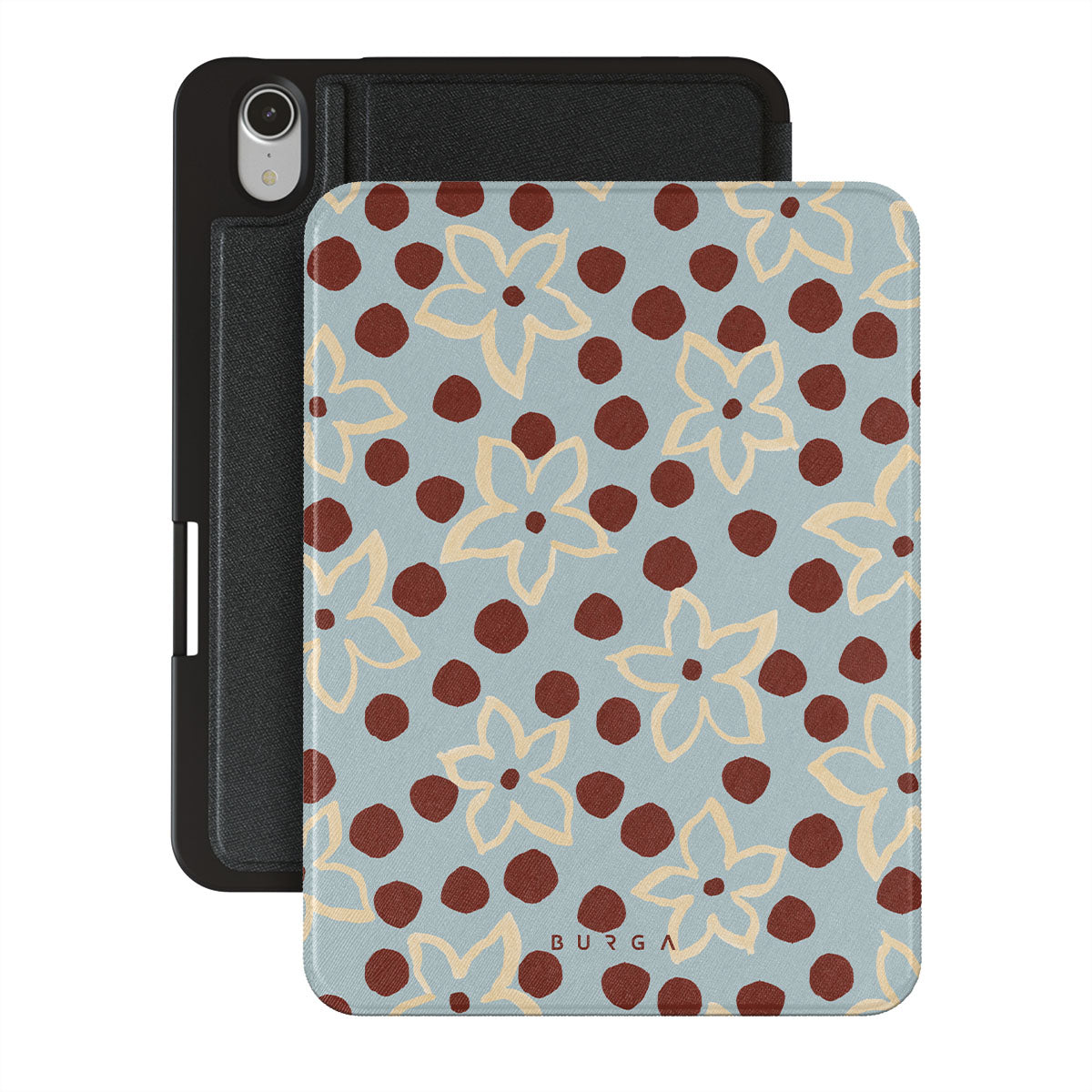 The Frutaria iPad Mini 8.3 (A17 Pro/6th Gen) design: retro surf motel wallpaper meets vintage ceramics. The soft florals, earthy dots, and cool-toned palette give major “forgotten seaside town in the ‘70s” energy.