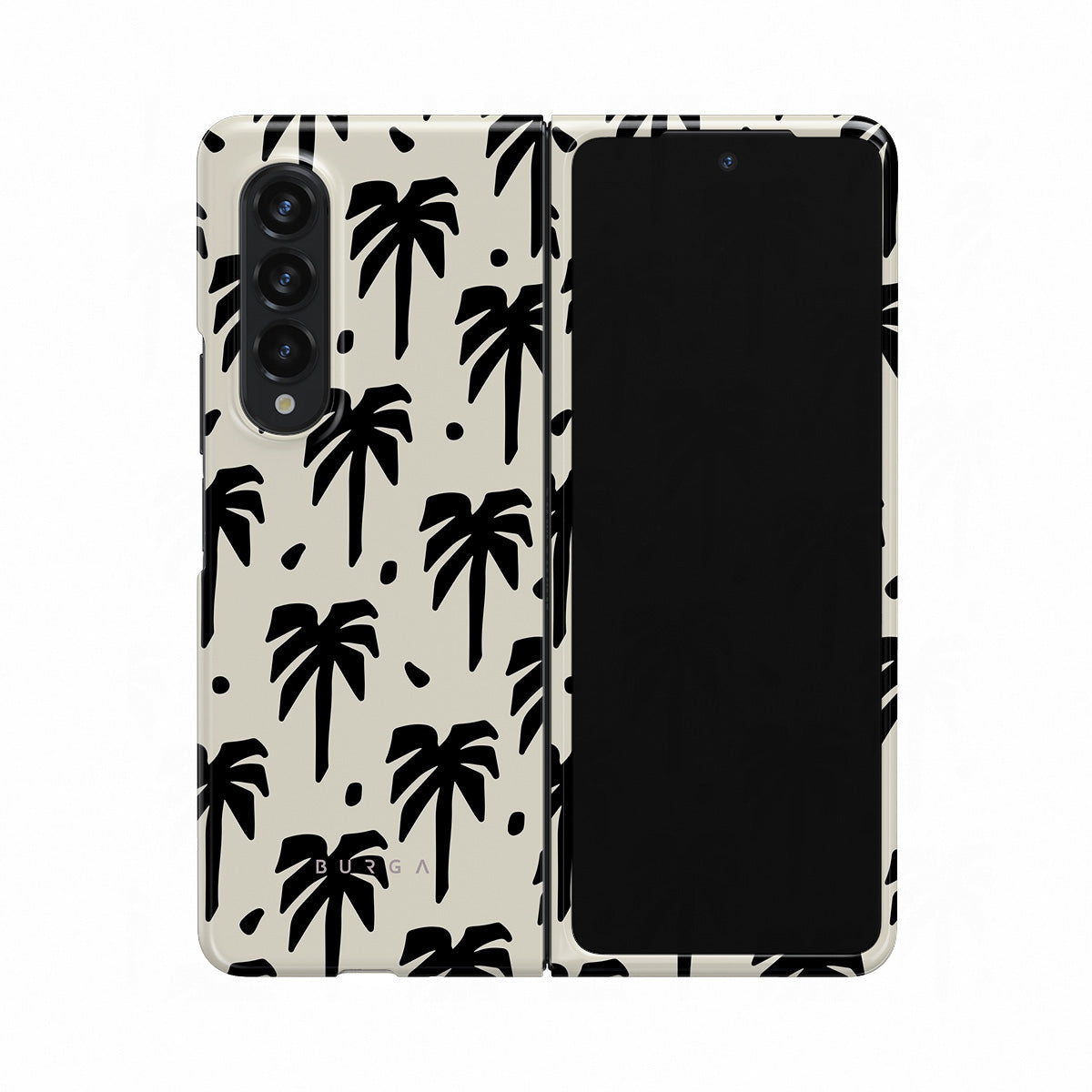 A peaceful haven right at your fingertips. The design contrasts black palm silhouettes against a calming light backdrop. Our Paraíso Samsung Galaxy Z Fold 3 phone case is your passport to an everlasting tropical escape.