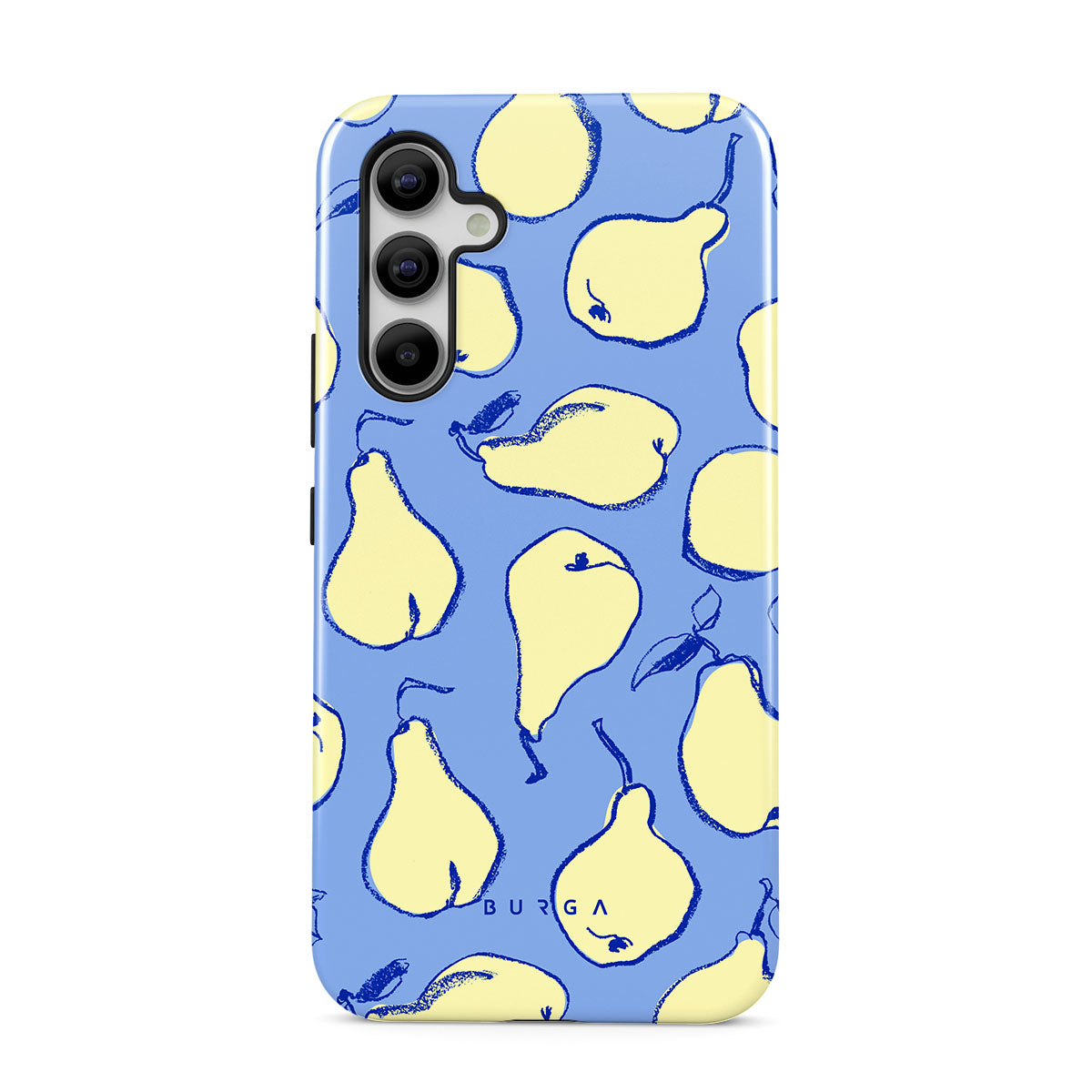 Step into a playful paradise with Pear Crush. Each pear is outlined with a lively, hand-drawn charm. This design brings a playful vibe to your Samsung Galaxy A54 phone case, perfect for those who love to embrace the lighter, more joyful side of life.