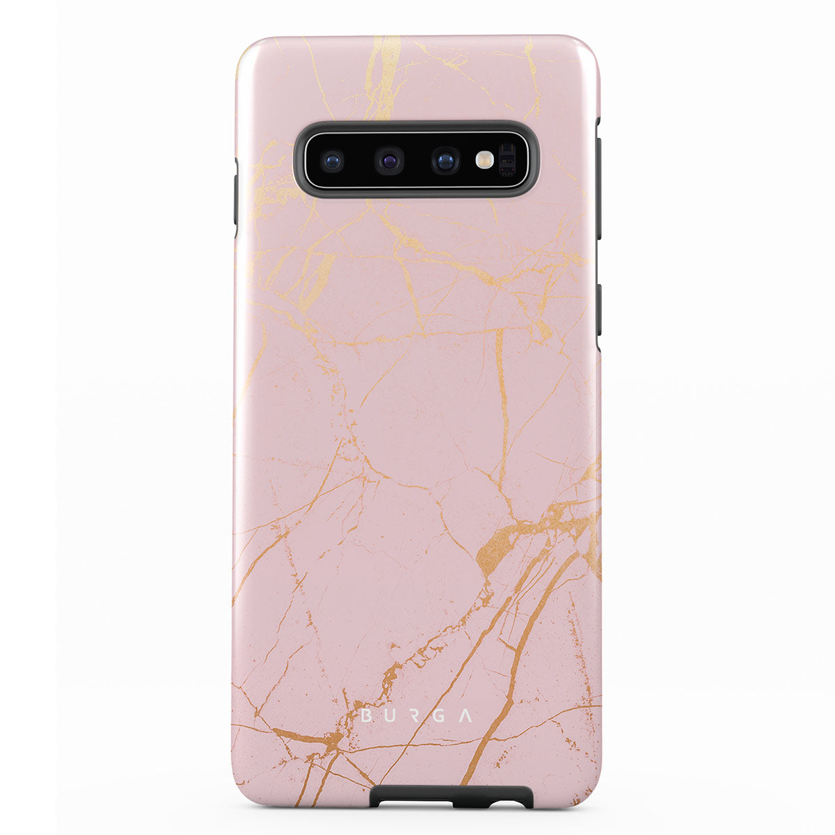 Growing under the beautiful sky and warmed by the rays of the sunshine, when ripped, peach offers you sweetness and softness. This is why our Peachy Gold Samsung Galaxy S10 phone case design adds a bit of golden color to the pink marble dream making a protective phone case both pretty and durable.