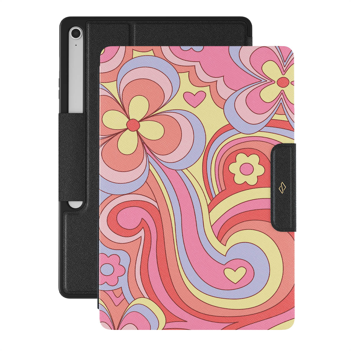 A design embodying a radiant, cheerful life filled with hope and joy. A celebration in hues, a mix of vibrant pink, yellow, and blue swirls. Roller Disco is where fashion meets fun. With beautiful pastels blending into a head-turning style, every day feels like a party. Spin your Samsung Galaxy Tab S10+ FE folio case into the spotlight!