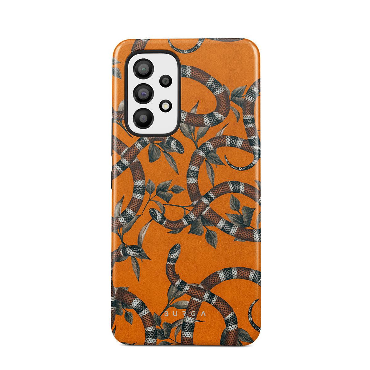 Take a bit of fierceness with yourself with our bright orange and dangerously beautiful Samsung Galaxy A33 phone case with a snake pattern. This case is real eye candy for fashion lovers and just as needed for those who strive to keep their phones protected.