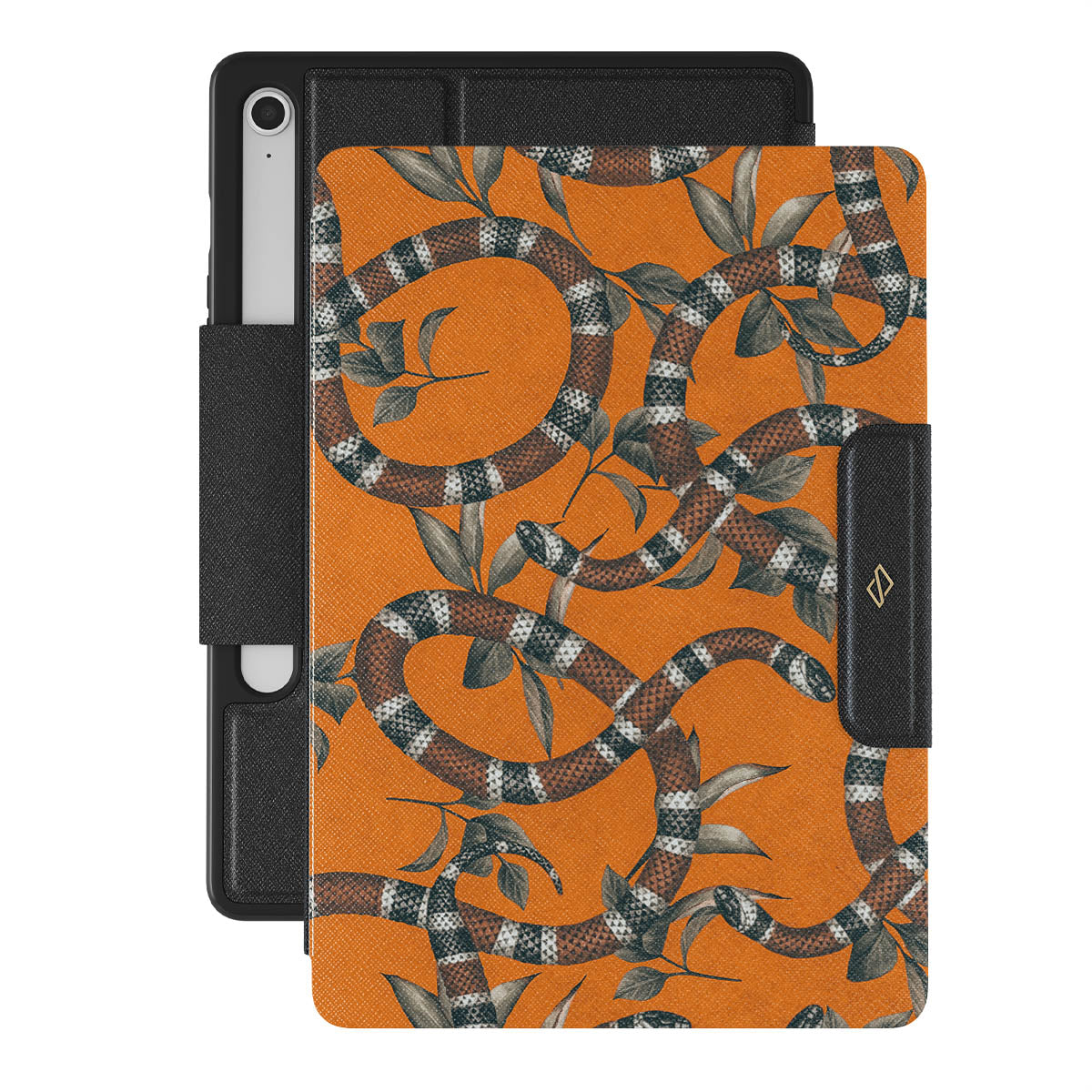 Take a bit of fierceness with yourself with our bright orange and dangerously beautiful Samsung Galaxy Tab S10 FE folio case with a snake pattern. This case is real eye candy for fashion lovers and just as needed for those who strive to keep their Galaxy Tabs protected.