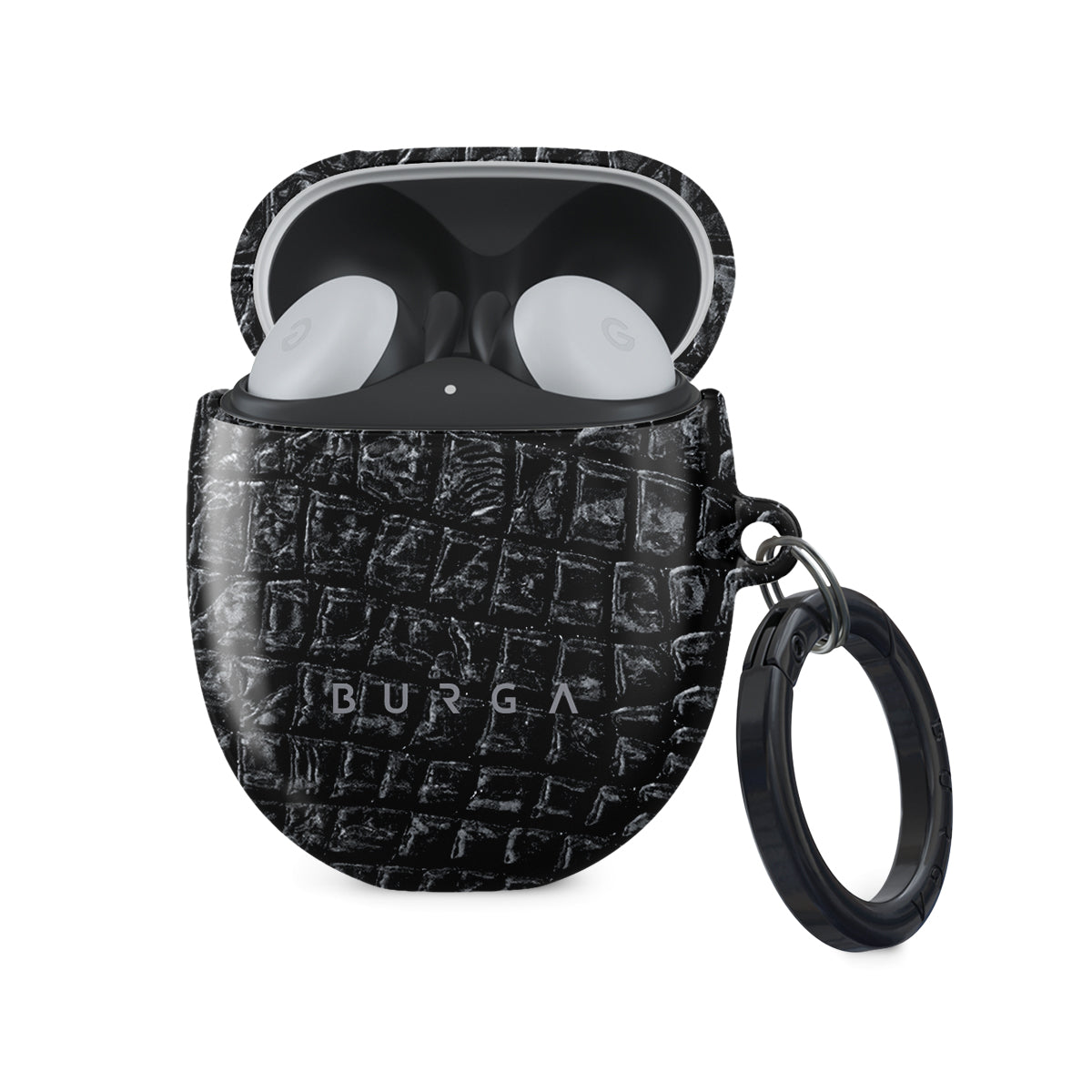 Our Reaper's Touch Google Pixel Buds 2 case cover features a dangerously beautiful snakeskin design in dark black. Add some confidence to your style, and keep your Google Pixel Buds 2 case covered and protected from the dangers of the world while looking stunning. Our case fits perfectly snug around Google Pixel Buds 2 . “Like a glove!” one might say. And it won’t disrupt the wireless charging capabilities of the newer model. There’s even an LED light indicator to prove it (don’t worry, wired charging still works, too). When fitted, the BURGA case will protect the delicate Google Pixel Buds 2 case beneath it from scratches, bumps, and drops while remaining scratch-free itself. Our signature design pattern prints are High Quality, and will never peel or fade away- thanks to our unique printing technology. And finally, a handy carabiner is there to make your life easier and more convenient: just snap it around your keys or belt loop and tackle the day head-on. Your music is right there by your side when you need it.
