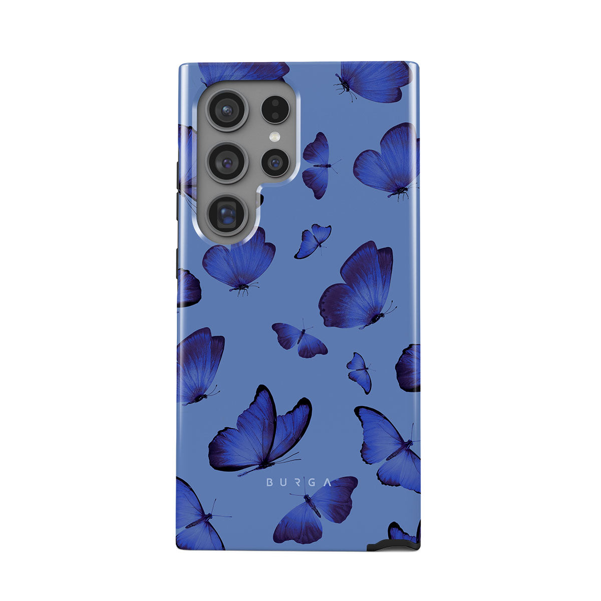 Bright blue butterflies dance across a sky-blue expanse, a visual representation of freedom and transformation. Our Spring Court Samsung Galaxy S24 Ultra phone case design symbolizes the soul's eternal dance with change, each flutter a step towards becoming who we are meant to be.