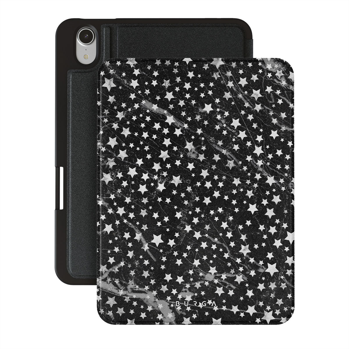 Dark, endless with flickering stars, the Starry Night iPad Mini 8.3 (A17 Pro/6th Gen) 2021 folio case is inspired by the sky above us. Here the charming star pattern meets with a trendy black and white marble. Add the unique combination to your wardrobe and transform your protective iPad case cover into a fashion accessory.