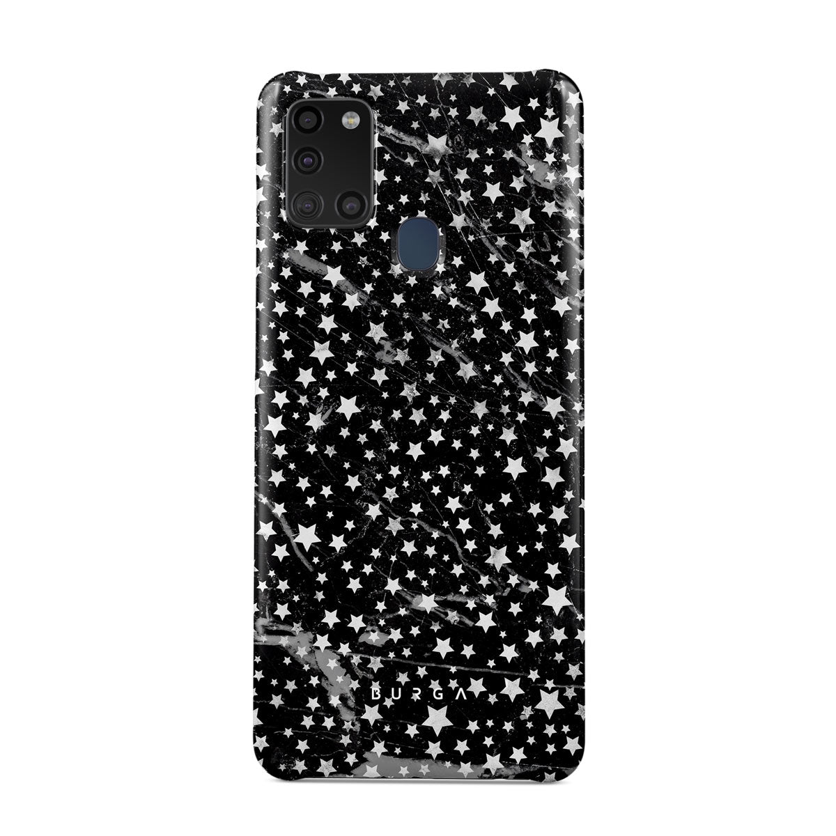 Samsung Galaxy A21s 4G phone case is inspired by the sky above us. Here the charming star pattern meets with a trendy black and white marble. Add the unique combination to your wardrobe and transform your protective phone case into a fashion accessory.