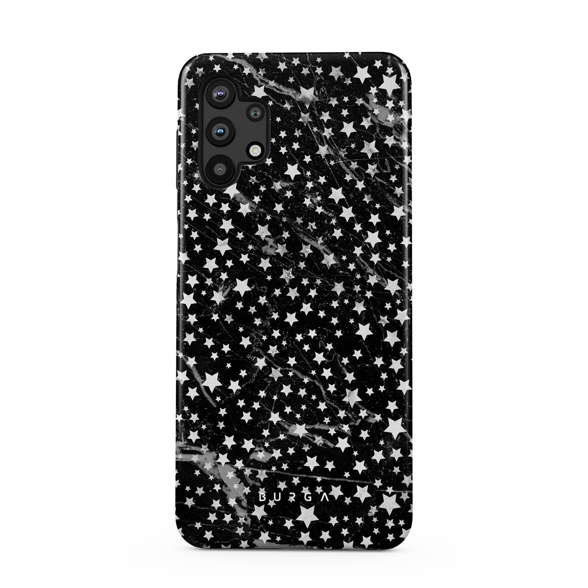 Samsung Galaxy A32 5G phone case is inspired by the sky above us. Here the charming star pattern meets with a trendy black and white marble. Add the unique combination to your wardrobe and transform your protective phone case into a fashion accessory.
