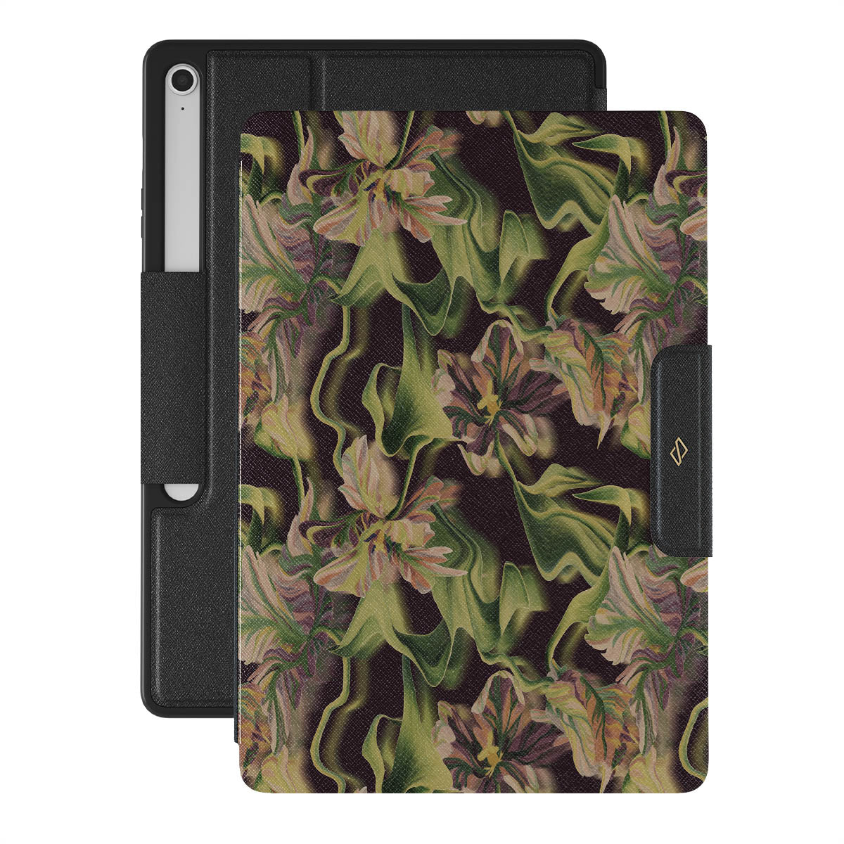 Let's wander into the world of humidity, fog, and deep green color. Our Subtropical Samsung Galaxy Tab S10+ FE folio case will add that exotic touch to your life. The flower pattern is as clear as it seems to be melting away. The purple and orange shades in the flowers will add that subtle splash of color to your style without being too provocative.
