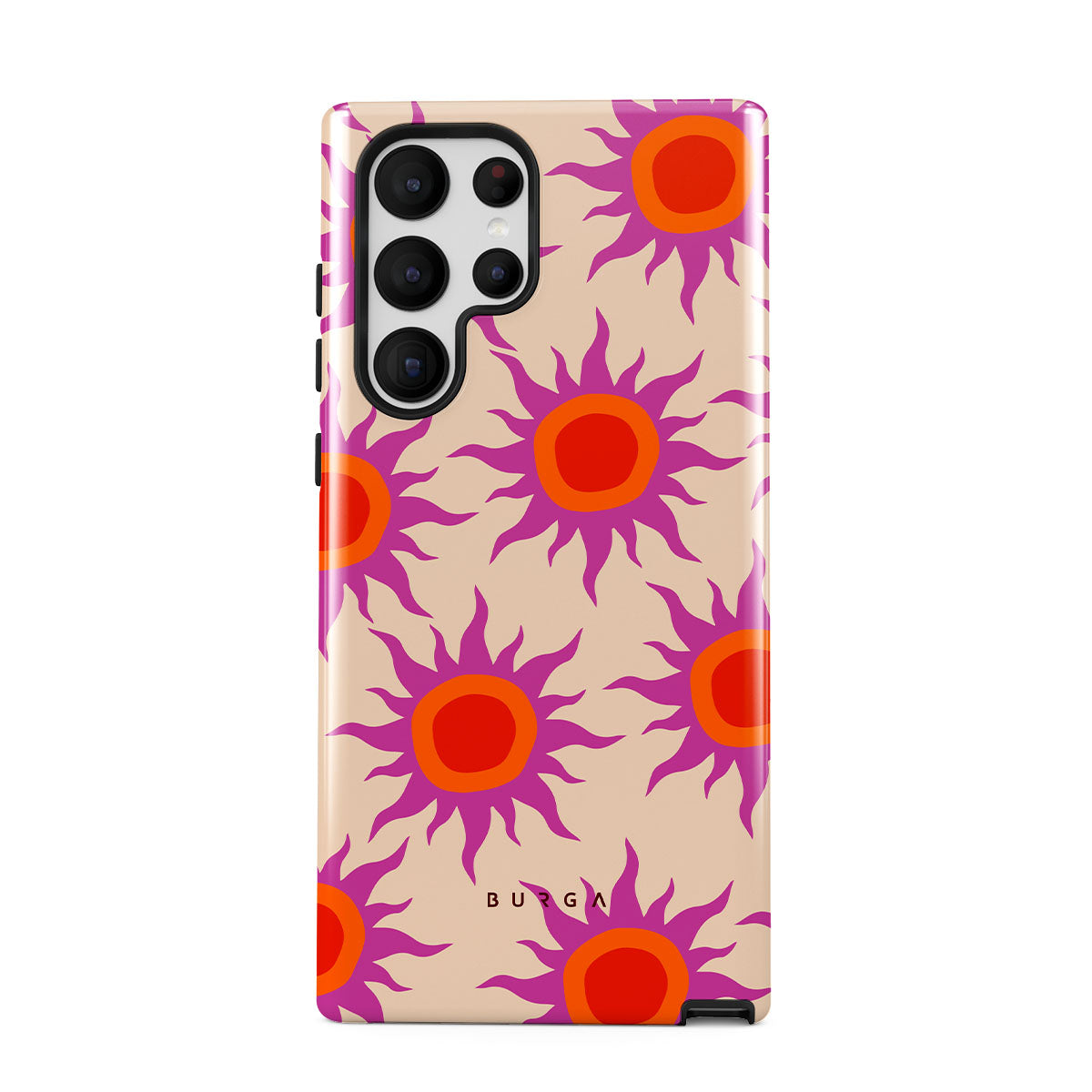 Discover the radiant serenity of the Sunset Glow design, a harmonious blend of soothing pastels and fiery suns. Vivacious viva magenta rays add a playful touch, perfectly balancing tranquility and dynamism. More than just a fashion accessory, this striking Samsung Galaxy S22 Ultra phone case mirrors your unique personality and zest for life.
