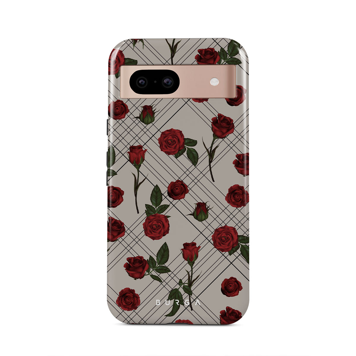 Embrace the subtle rebellion of our Sweet Sin Google Pixel 8a phone case design. On a muted nude-gray canvas, scattered small red roses hint at passions hidden beneath the surface. A design that balances the delicate with the daring. Crafted for those who find beauty in the unexpected and wear their edge with elegance.