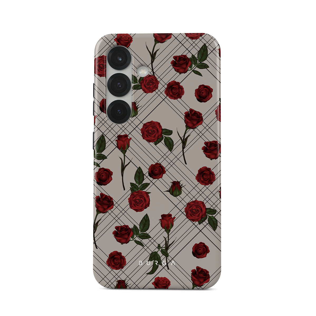 Embrace the subtle rebellion of our Sweet Sin Samsung Galaxy S25 Plus phone case design. On a muted nude-gray canvas, scattered small red roses hint at passions hidden beneath the surface. A design that balances the delicate with the daring. Crafted for those who find beauty in the unexpected and wear their edge with elegance.