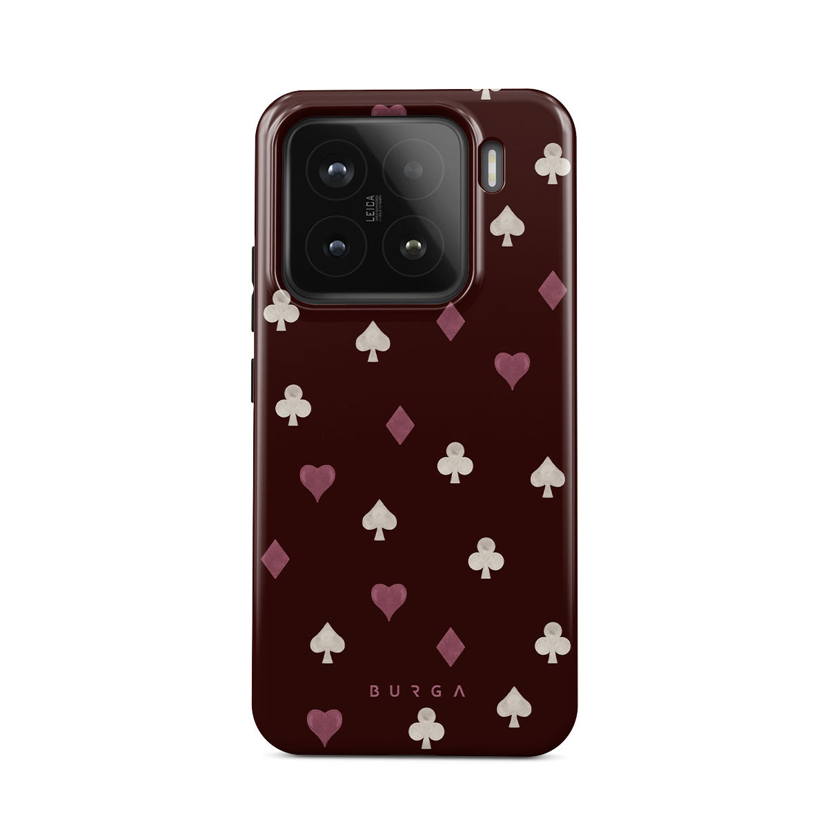 Nothing is as it appears. Hearts, clubs, diamonds, and spades—stacked in your favor or playing against you? This Xiaomi 15 phone case design features a rich burgundy background and minimalist suits that make for a game where the rules are constantly shifting.