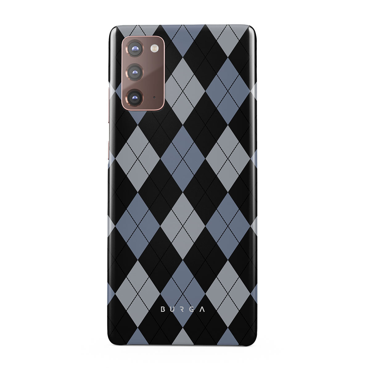 Discover our Trouble Samsung Galaxy Note 20 4G / 5G phone case design—a classic argyle pattern featuring stark black diamonds that seamlessly blend with two distinct shades of blue. Made for those who respect the classics but aren't afraid to disrupt the norm.