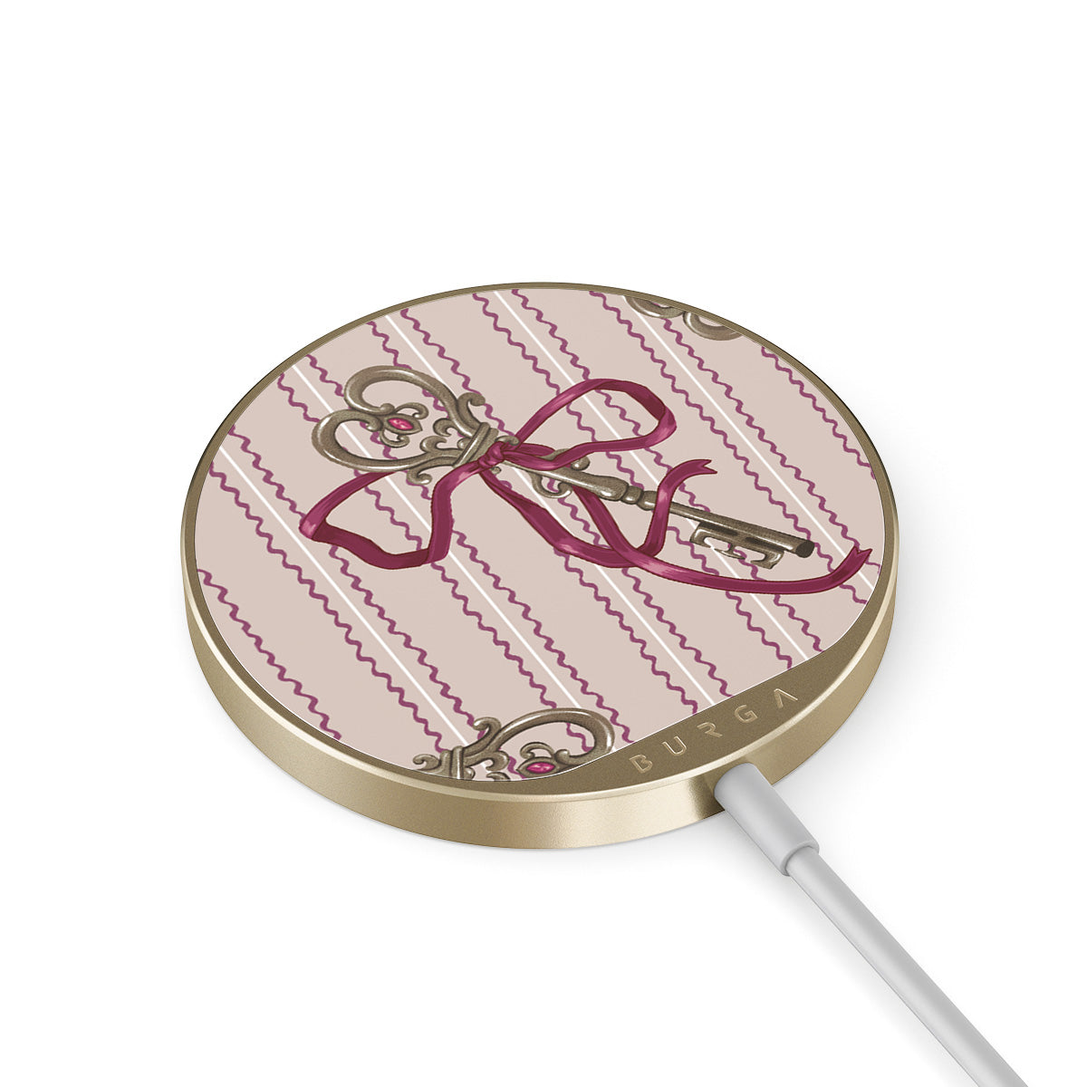 The 1.5m integrated cord makes it easy to charge wherever you are — at the office, chillin’ on the sofa, or killing time at the airport lounge. Plus, the BURGA glass back gives you 500+ prints to choose from, so your charger looks as good as your case.