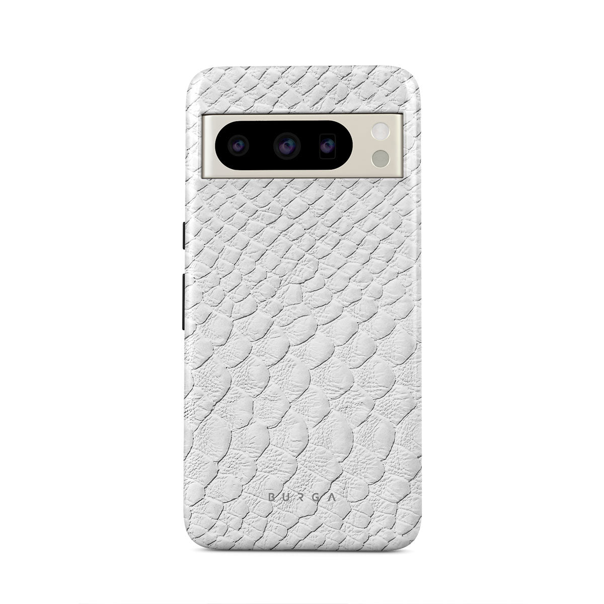 Glacial Desert Google Pixel 8 Pro phone case features snakeskin design in glacial white color. The dangerous animal print will add confidence and a touch of luxury to your style while transforming your phone into a fashion accessory.